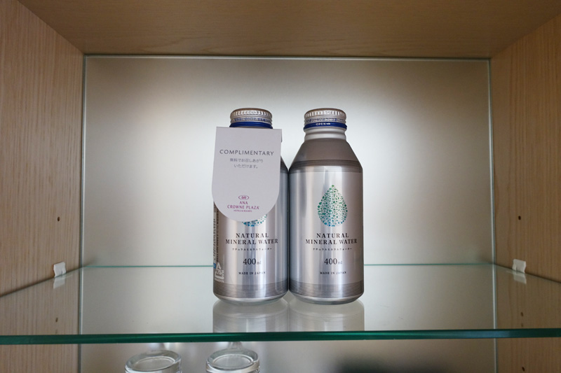 お水はアルミ缶のものが2本用意されています。ペットボトルじゃないのがいいですね!