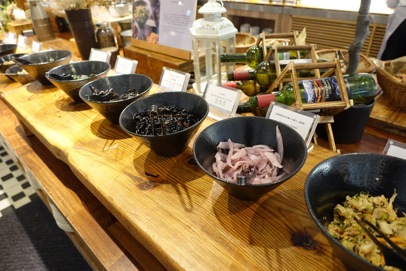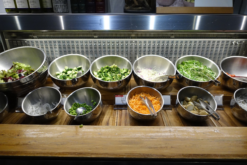 サラダコーナー(サラダ菜、オニオン、きゅうり、ブロッコリー、キャベツ、じゃがいも、枝豆、ニンジンなど11種)