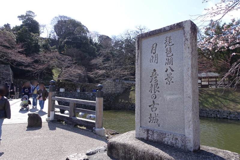 橋の先には彦根城の防御の要である重厚な石垣と櫓が見え、かつての城の厳重な防備体制を実感できます。