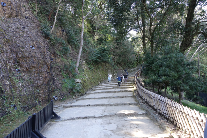 表門橋を越えるとチケット売り場があって、その先に「表門参道」と呼ばれる石段の道が続きます。