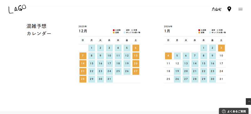 LAGOの公式サイトには「現在の混雑状況」と「曜日ごとの混雑状況」が掲載されているので、いかれる曜日なども確認してからいかれるといいですよ!