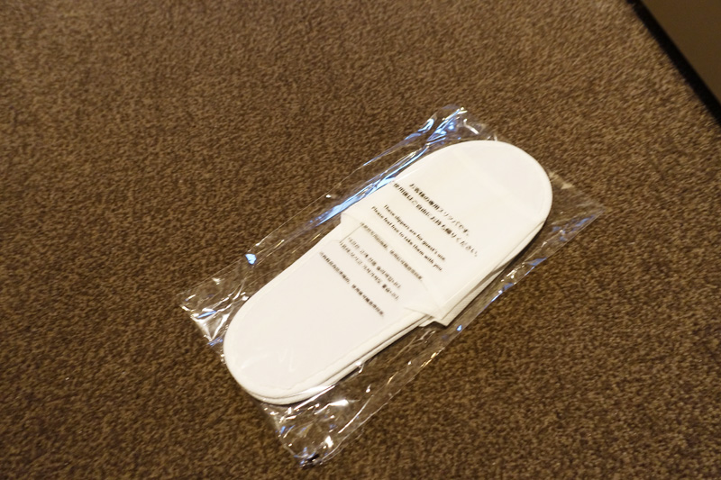 使い捨てタイプのスリッパもちゃんとありました。ちょっと生地は薄いけどね。
