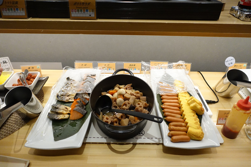 焼き魚は鯖と鮭が用意されていて、だし巻き卵や筑前煮なども安定感あり。
